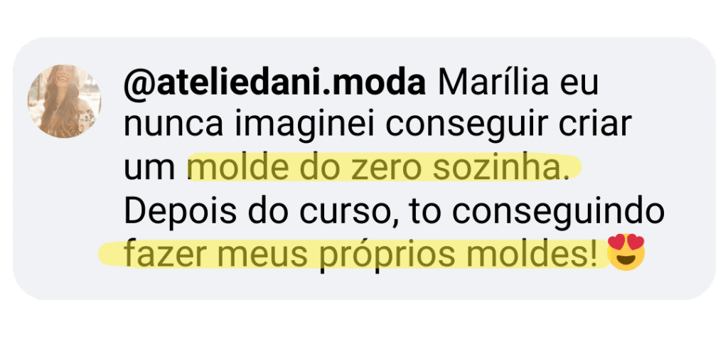 Veja o que nossas alunas estão falando depois de criar seus primeiros moldes digitais.